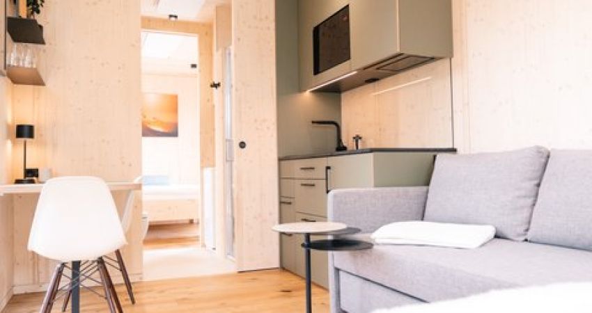 Direkt neben dem Hotel ist neu ein gemütliches Tiny House buchbar, hochwertig ausgestattet mit einem Doppelbett, einem gemütlichen Sofa (auch als Schlafsofa nutzbar), Flachbild-TV, einer Küche mit Spülmaschine, Kühlschrank und Backofen mit Mikrowelle, Waschmaschine, WLan inclusive sowie Terrasse mit Blick auf den Innenhof. Die Parkplätze und Fahrradgaragen des Hotels können genutzt werden. Ein Frühstück im Hotel kann zusätzlich gebucht werden.