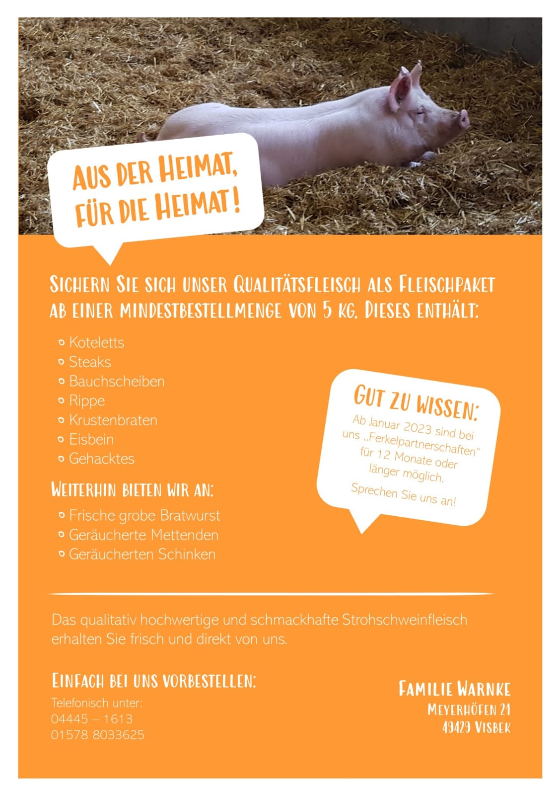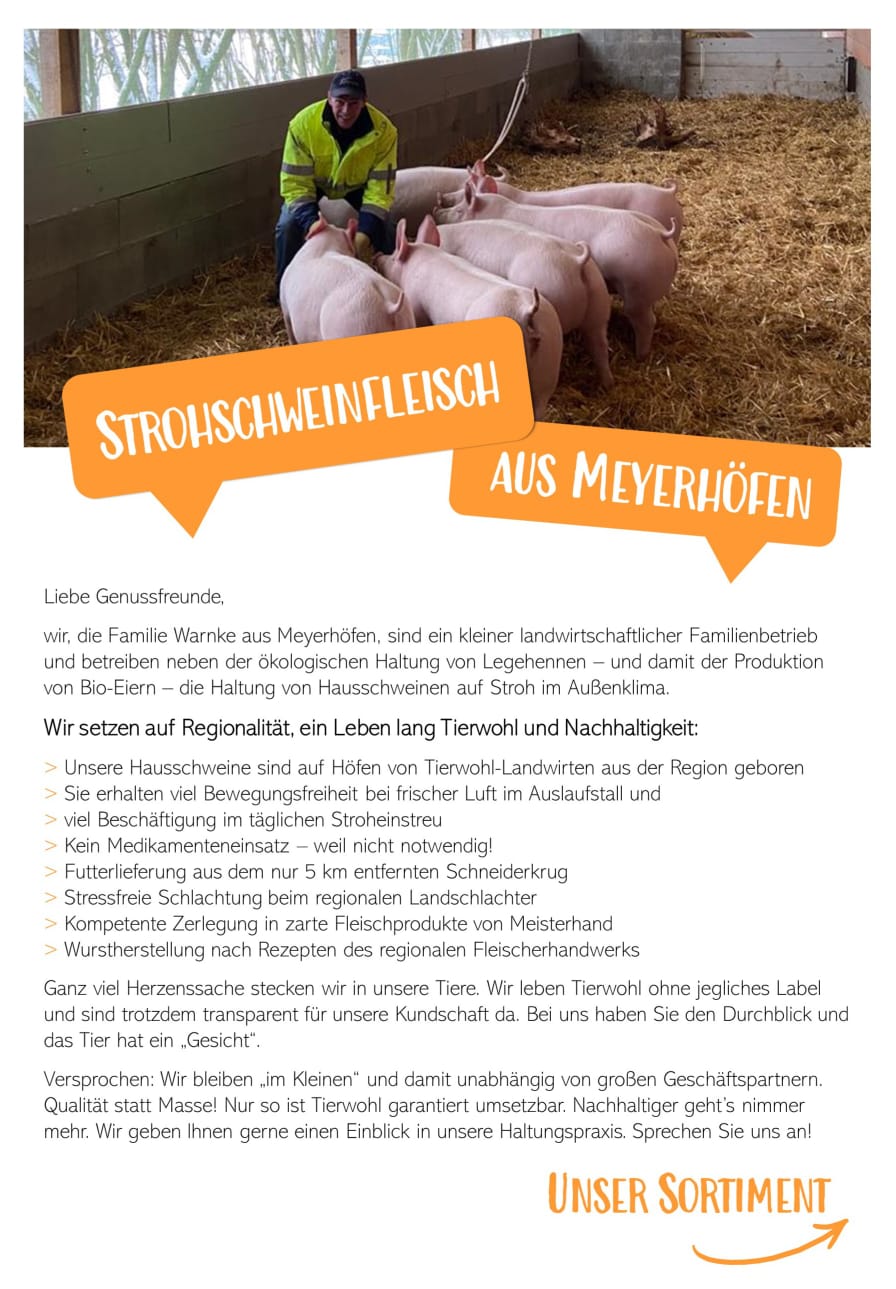 Zusätzlich verkaufen sie qualitativ hochwertiges Strohschweinfleisch: